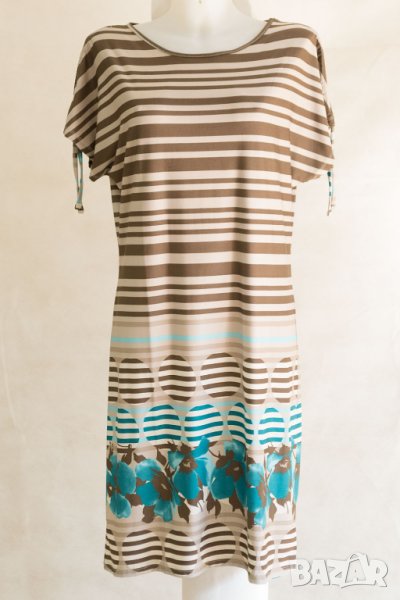 Рокля в бежово, кафяво и синьо Cesy Fashion - 2XL → Обява 42593597