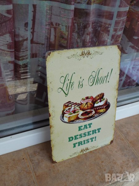 Ламаринена табела - Life is short eat dessert first, подходящи за заведение, бар, колекция или за в къщи.