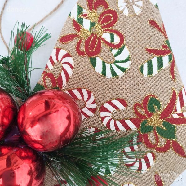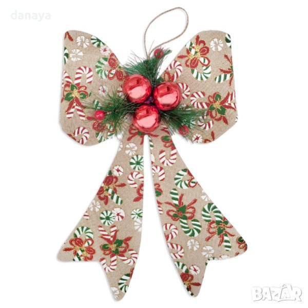 Коледна панделка за украса и декорация. Стои изключително ефектно, поставена на стена, врата, допълнение към коледен гирлянд и др. Панделката е допълнително украсена с елхови клонки и коледни топки.