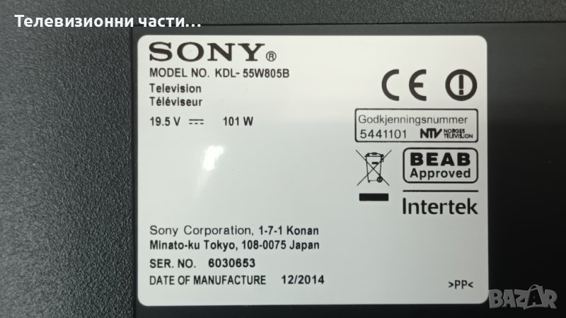 Sony KDL-55W805B със счупен екран-1-889-202-22/1-889-203-22/T550HVN06.0 55T16-C06/T550HVF05.0