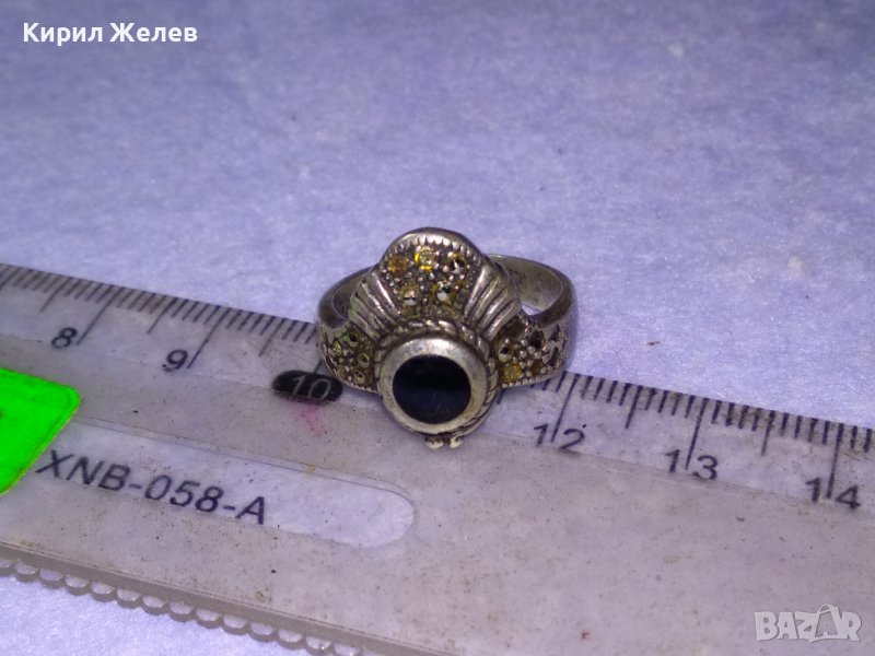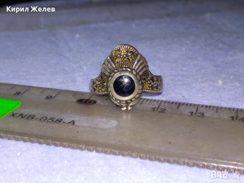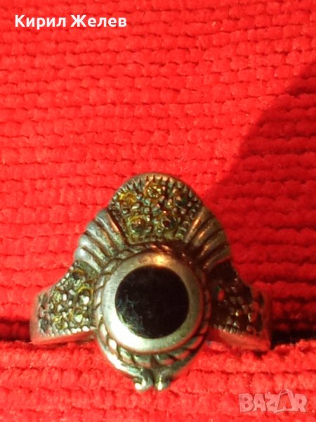 Старинен МАРКОВ Скъпоцн. СРЕБЪРЕН АРТ ДЕКО ПРЪСТЕН СРЕБРО 925 АНГЛИЯ с МАРКАЗИТИ и ЧЕРЕН ОНИКС 40595