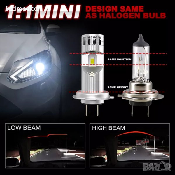 1. Дизайн като оригиналните халогенни крушки 1:1 - точната насоченост на светлинния фокус с оригиналните халогенни крушки.
