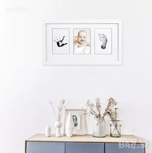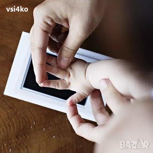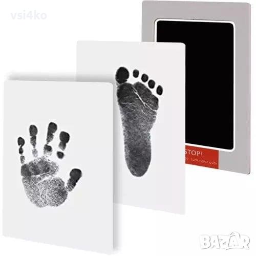 БЪРЗА ИЗРАБОТКА – За да направите отпечатък, уверете се, че мастилото е обърнато надолу върху включената бяла карта, след което натиснете ръчичката или крачето на детето си върху подложката с мастило. Оставете да изсъхне.