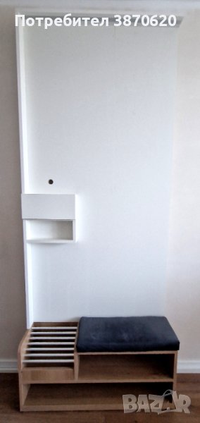 Продавам портманто с шкаф за обувки ползвано една година, няма следи от употреба, продавам го защото направих някои допълнителни промени и се наложи да ми го изработят наново. Цвят: бяло и дървесно; Материал: ПДЧ