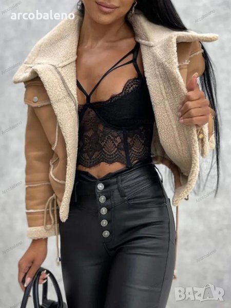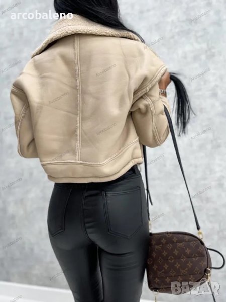 Дамско кожено яке от изкуствена агнешка вълна в мотоциклетен стил, 3цвята