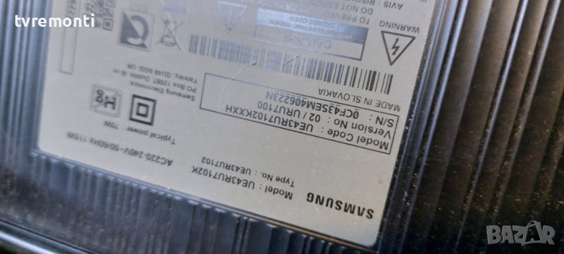 Захранваща платка ,BN44-00947J, L43E7_RSM, SAMSUNG UE43RU7102K for 43inc DISPLAY CY-NN043HGHV2V → Обява 42605350