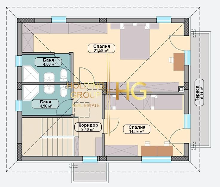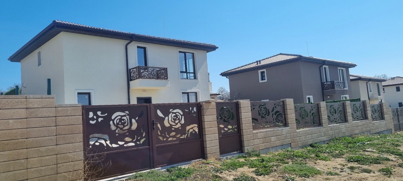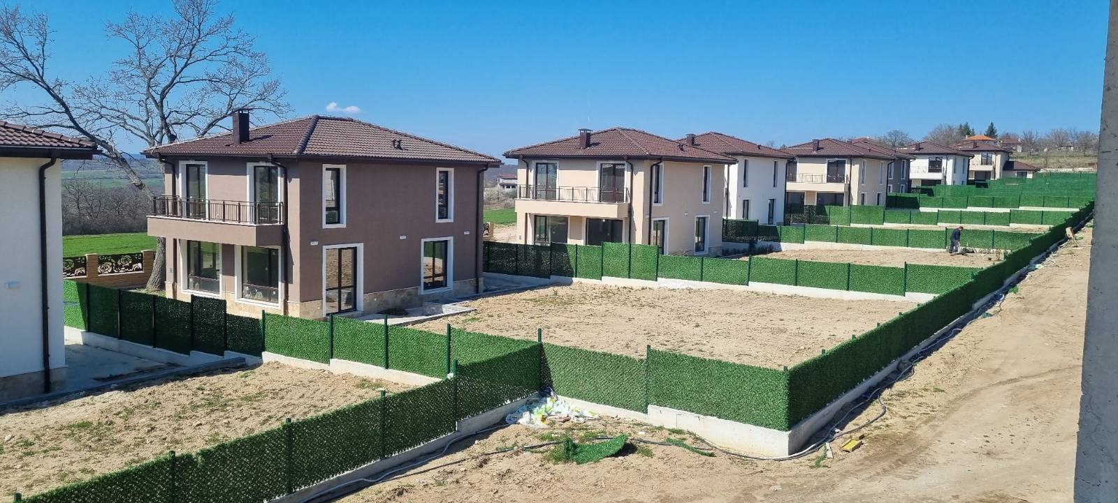HOLDING GROUP real estate представя на Вашето внимание новопостроена двуетажна къща с площ от 158 кв.м.в с. Приселци. Намира се комплекс от затворен тип със собствен парцел с площ от 618кв.м. и паркомясто. Ситуирана е на два етажа и разпределението е следното: На етаж едно - просторно антре, светъл дневен тракт с площ от 32,39 кв. м., спалня с площ от 12,53 кв.м. килер и баня с тоалетнае. Вътрешно стълбище ни отвежда до етаж две, където са разположени коридор, баня с тоалетна, спалня 14,59 кв.м. и втора спалня 21,58 кв.м. със собствена баня с тоалетна. Двете спални имат излаз на обща тераса. Ако желаете да живеете сред тишина, зеленина и простор, то този дом е точно за Вас. Разположен в луксозен комплекс с 30 еднофамилни жилищни сгради, разположен в землището на с. Приселци. Сградите са проектирани в модерен стил с интериорни и екстериорни решения, съчетали в себе си комфорта на жилищната среда в близост до природата, чистият морски въздух и уединеност. Налични са и къщи с две и четири спални. БЕЗ ТАКСА ПОДДРЪЖКА!!!