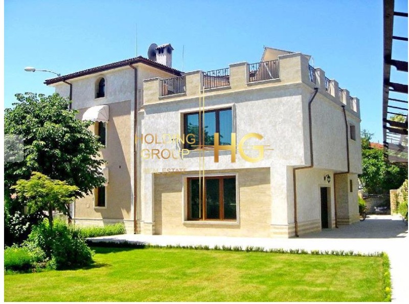дърворезба. Фитнес зала, оборудвана с уреди от висок клас, солариум, сауна, джакузи, библиотека, зимна градина и външен басейн е всичко, което получавате със закупуването на този чудесен имот. Дворът е 1129 кв.м., аранжиран и поддържан с прекрасна растителност. За собствениците на този шедьовър и техните гости са подсигурени 6 паркоместа в двора. Сутерена е обособен като винарна, парна сауна, джакузи и баня с тоалетна. Обзавеждането е от масив, а подовите настилки от италиански мрамор. Всеки детайл е изпипан до съвършенство. Локално парно отопление. Намира се в една от най-желаните дестинации на гр. Варна Евксиноград. До имота се стига по изцяло асфалтов път.