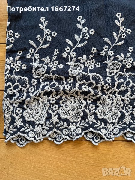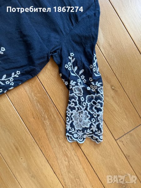 Блуза с дълъг ръкав, тъмно синя с бродерия