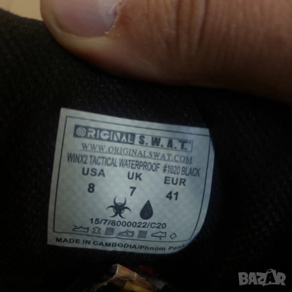Тактически обувки на американската фирма Original S.W.A.T. Моделът WinX2 8" WP е създаден, за да предостави възможно най-доброто качество в индустрията. Винаги ще чувствате краката си сухи, благодарение на водонепроницаемата си горна част, произведени от естествена кожа със специална подметка, която не оставя следи и е устойчива на хлъзгави повърхности. Специални платформи TEXTON за по-голяма стабилност и упора. Обувките са подходящи за военнослужещи, полицаи, професионални охранители или запалени планинари и ловджии.
