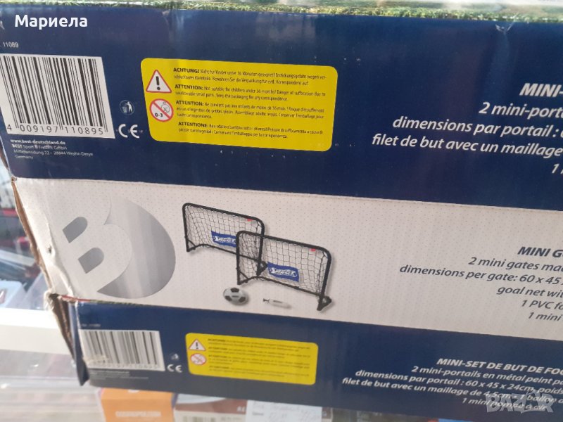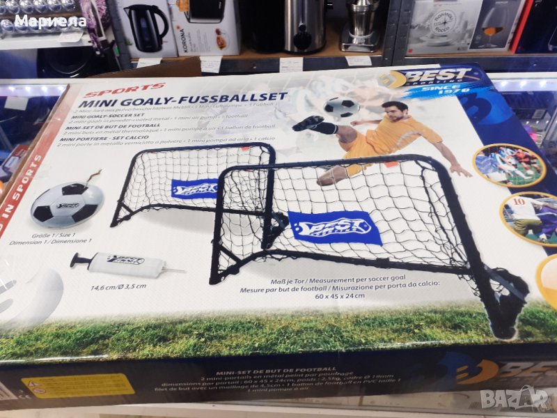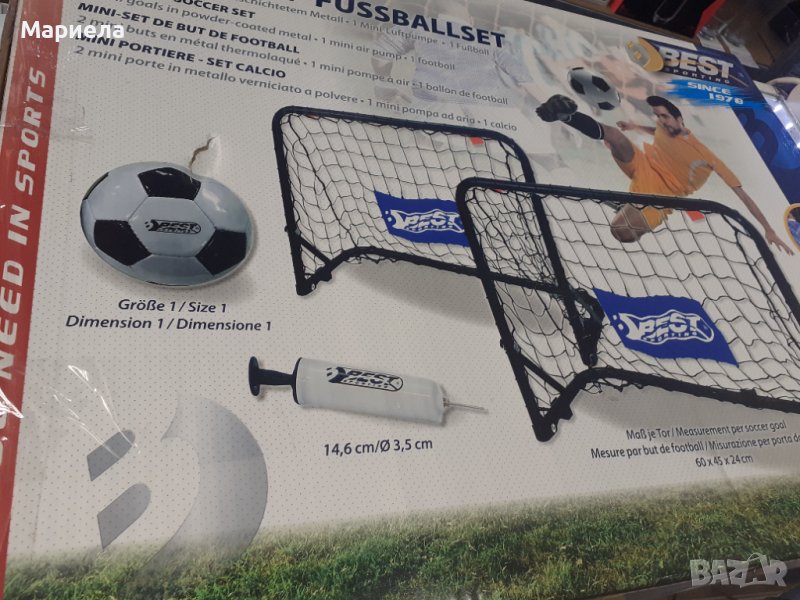 Обхват на доставката: 2 мини врати, 1 PVC футбол (размер 1) и 1 мини въздушна помпа