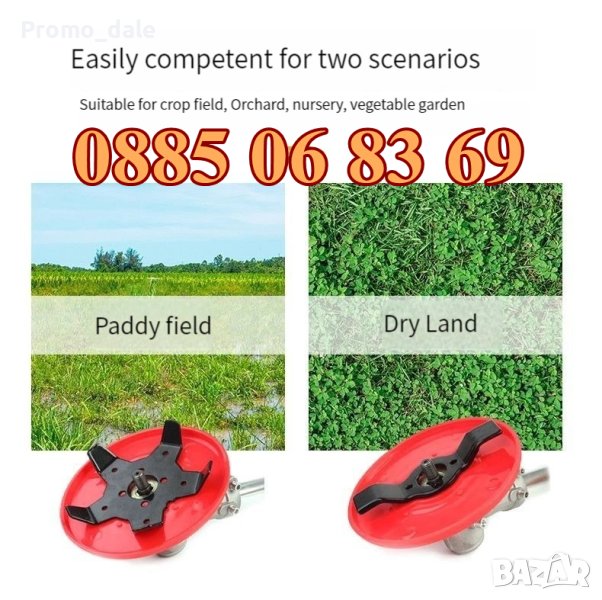 Този нож е предназначен за косене на трева и е особено полезен за работа в ниви, овощни градини, разсадници и зеленчукови градини. Една от ключовите предимства на този нож е, че при работата с него няма да повредите културите, тъй като дискът, който се използва за косене, е по-голям от острието. Това означава, че при косене на трева около културите, дискът няма да докосне или повреди тях.