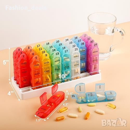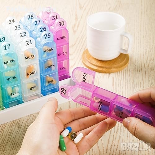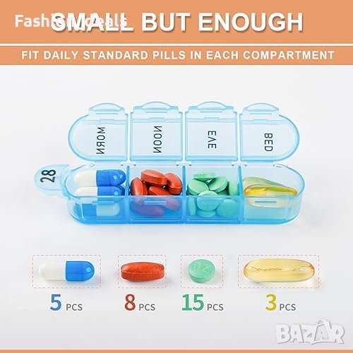 Нова кутия Месечен Организатор за Таблетки 4 пъти Дневно + 2 Бонус Кутии