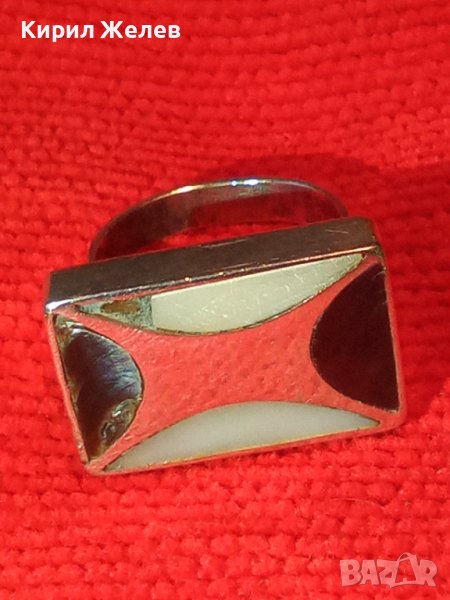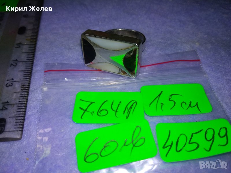 Стар СРЕБЪРЕН ЕЛЕГАНТЕН ПРЪСТЕН СРЕБРО 925 с ЧЕРЕН ОНИКС и МЛЕЧЕН КВАРЦ РЪЧНА АРТ ИЗРАБОТКА 40599