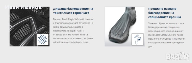 Вашият Black Eagle Safety 61.1 нисък с текстилна горна част позволява на крака ви да диша, защото е пропусклив за водни пари и отвежда влагата навън. Това се постига чрез използването на фино обработен микрофибърен плат.