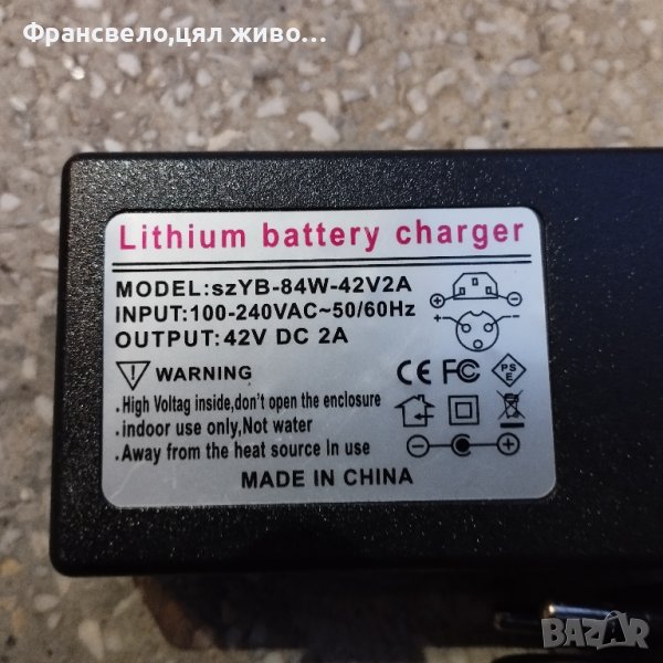 Зарядно 36 волта за електрически велосипед скутер тротинетка → Обява 42619983