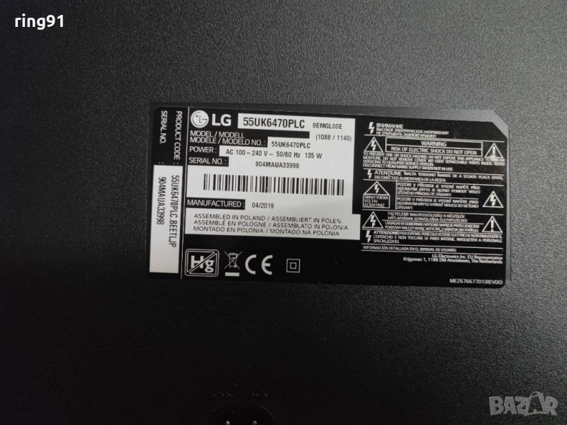 Захранване - EAX67865201 (1.6) TV LG 55UK6470PLC → Обява 42620272
