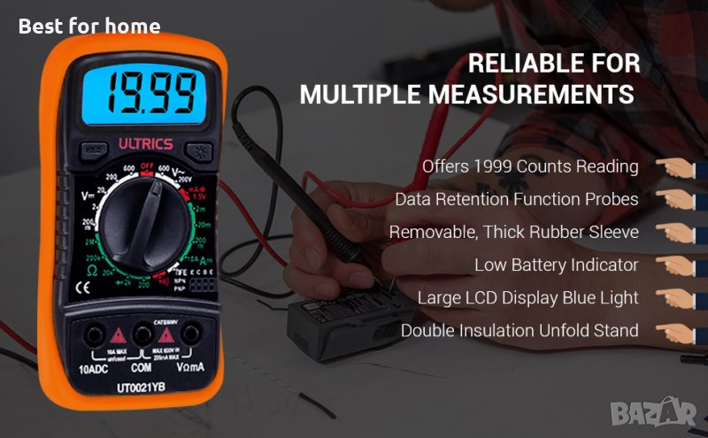 【НАДЕЖДНА РАБОТА】 Този цифров мултитестер включва тестови проводници и 9V батерия, защита от презареждане във всички диапазони, индикатор за изтощена батерия. Двойна изолация със стойка за добър ъгъл на видимост