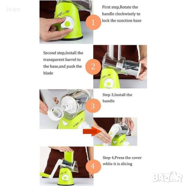Най - доброто кухненско ренде. С три приставки. Изключително лесен за ползване уред. С него ще на режете всички продукти, лесно и доста по - бързо, отколкото с конвенционалните рендета.