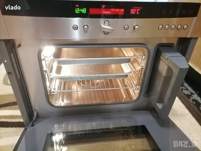 Голям дигитален контролен панел със стъклен елемент разположен в средата, английско меню, лесна и удобна работа с индикацията за час и време за приготвяне, кухненски таймер, методи на нагряване и автоматични програми.