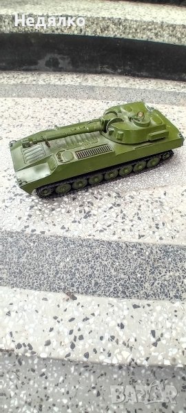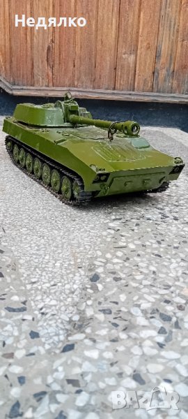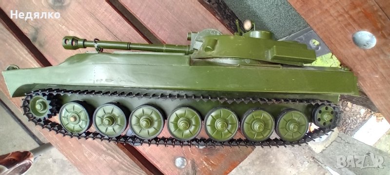 Оригинален модел ,фабричен,единични бройки,37х14х11 см,шаси от ламарина,купол от месинг,оръдие от алуминий.Оръдието при откачане от скобата се движи напред и назад и пропада,както съм го купил.При издърпване напред се фиксира на желан ъгъл.Повече на телефона,само за сериозни.Книгата от последната снимка е бонус.