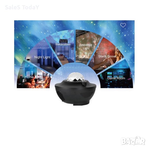 Проектор, стаен проектор (стаен проектор) с лед, дистанционно и USB кабел. Проекторът осветява тавана и има 3 функции: функция за океанска вълна с 3 нива на яркост, LED и лазерна светлина. Той автоматично разпознава USB и възпроизвежда музика, докато съдържа песни, използвайте клавишите, за да преминете към предишната или следващата песен, да намалите или увеличите силата на звука или да спрете функцията. Съдържа дистанционно управление, с което можете да променяте цветовете на осветлението и много други функции, които ще намерите в инструкциите за употреба. Дистанционното управление работи с 2 батерии AAA (не са включени).
