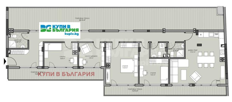 Компания за недвижими имоти 'Купи в България' предлага многостаен апартамент разположен в нова сграда в кв.Възраждане.