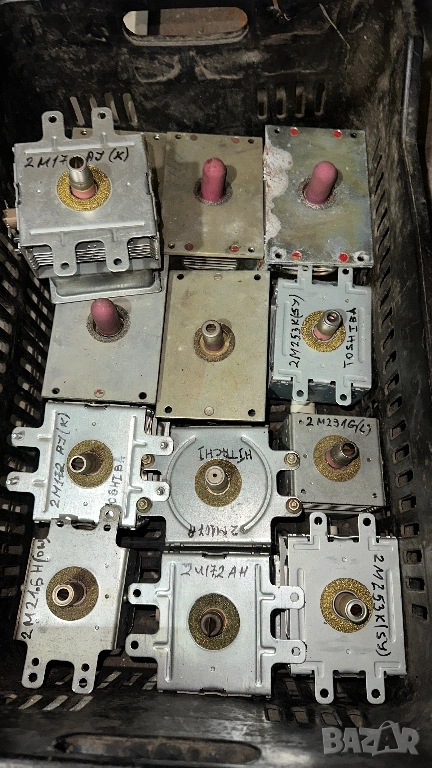Магнетрони за микровълнова печка, чинии, диоди, кондензатори и трансформатори. Нов магнетрон 30 €. Втора ръка 15 € налични модели 2М216 Н (DW); 2M172 A J (K); 2M107 A; 2M172 AH; 2M253 K (SJ) TOSHIBA ; 2M231 G (L) ;