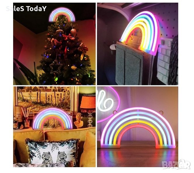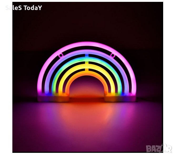 Светеща табела, LED лампа за стена, неонова светлина, Дъга, USB, 30x18cm