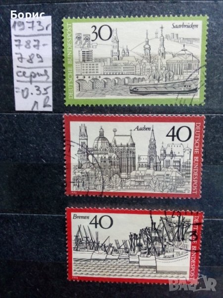 Серия от три марки на тема " Туризъм " , девета от тази поредица . Тук представените градове са Саарбрюкен , Аахен и Бремен . Висококачествени марки за колекция . Номерата са по Михел .