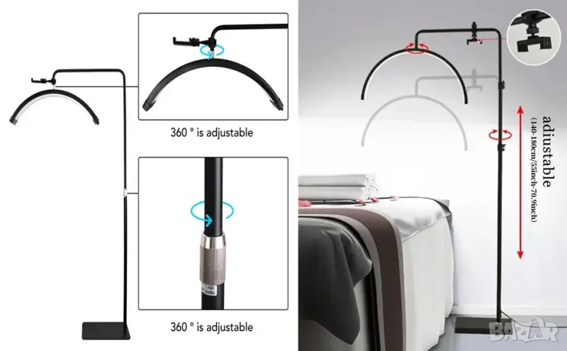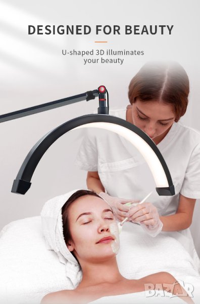 Професионална LED лампа за миглопластика, грим, маникюр, микроблейдинг и татуировки луна със стойка за телефон. Перфектна за създаване на страхотни снимки на вашата работа за социалните мрежи. Най-добрият избор за всеки салон за красота.