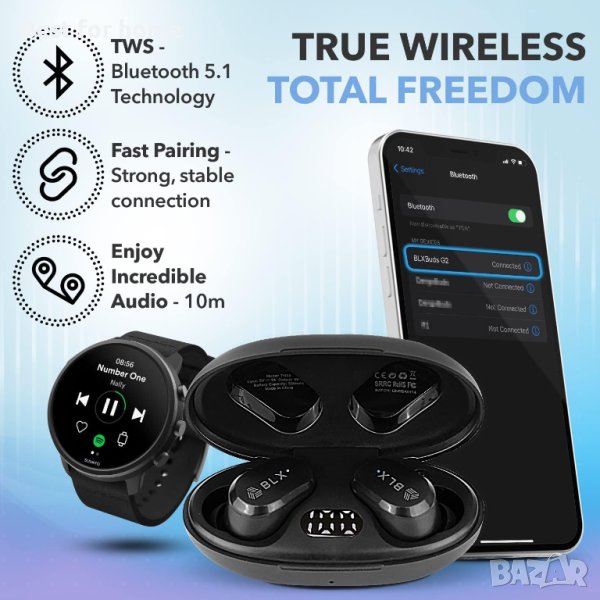 ВОДЕЩИ В ОТРАСЛА 5.1 BLUETOOTH БЕЗЖИЧНИ СЛУШАЛКИ С TWS ТЕХНОЛОГИЯ - Насладете се на аудио по безжичен начин с чисто новите безжични слушалки Blx Buds за iPhone. Нашите безжични Bluetooth