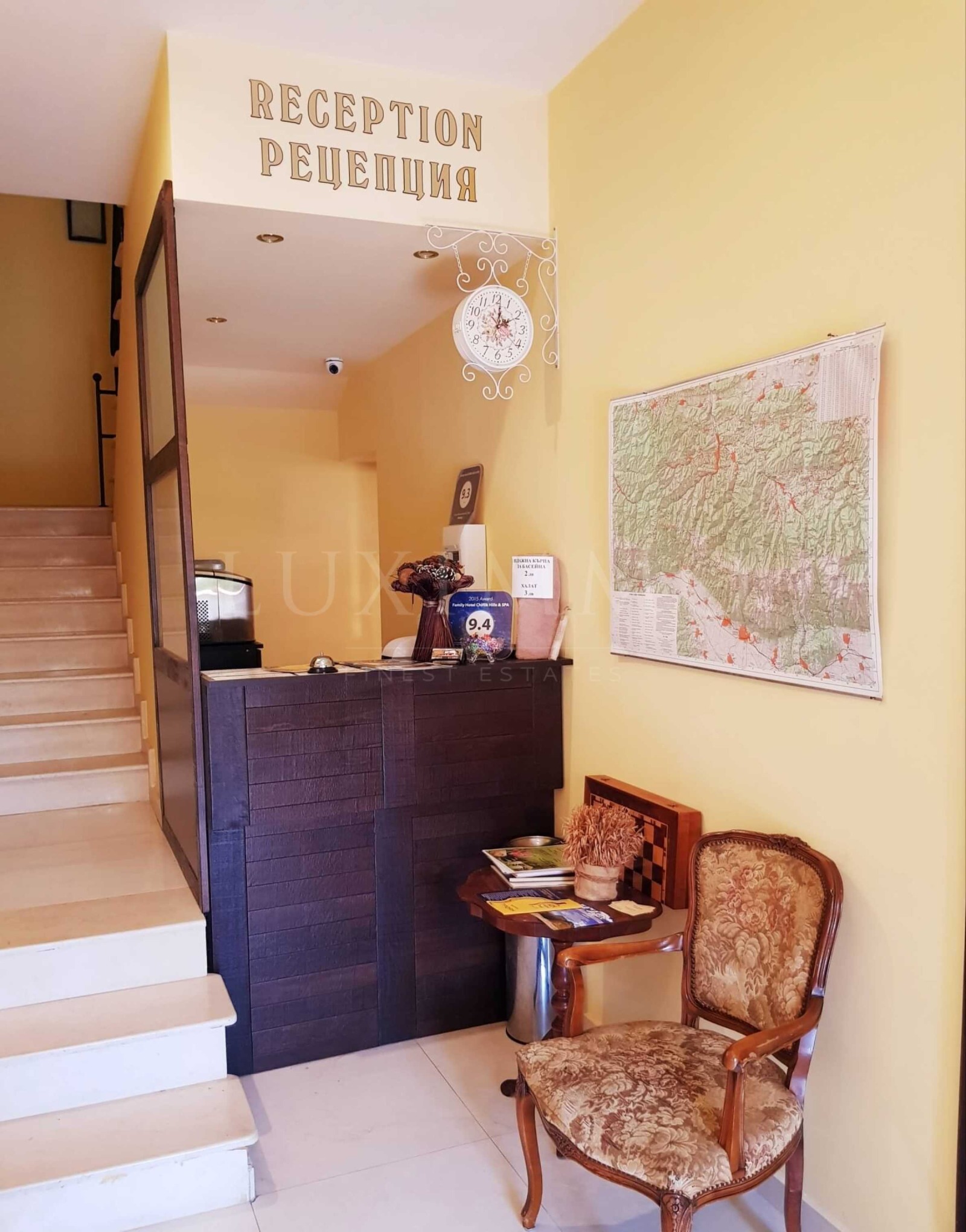 Новопостроената сграда е с РЗП 667 кв.м. функционално разпределени между двата етажа на хотела. Имотът е разположен в добре поддържан двор от 1000 кв.м. в централната част на населеното място и в същото време граничи с гората. В парцелът има изградени още открит голям и детски басейн, барбекю, цветна градина, зеленина и градинско осветление. Хотелът е построен и напълно оборудван с висок клас материали и уреди. Стилно и уютно е обзаведен само с мебели от естествени материали, което придава на имота още повече чар.