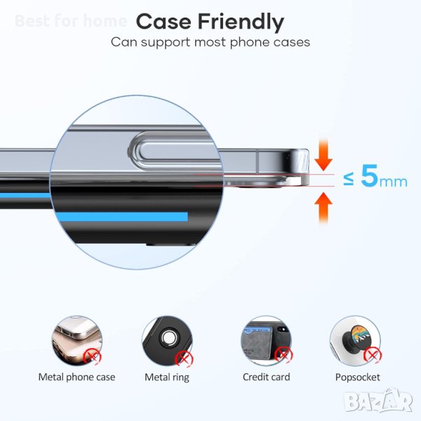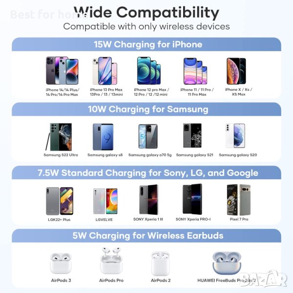 V6 15W безжично зарядно за iPhone 14/14 Pro Max/13/13 Mini/13 Pro Max/12/12 Pro/11, Samsung Galaxy → Обява 42627478