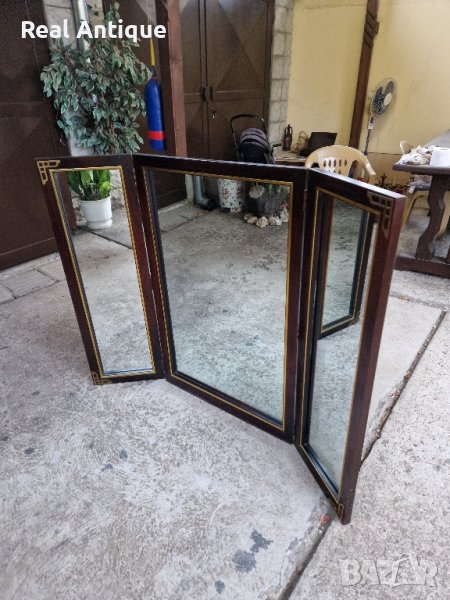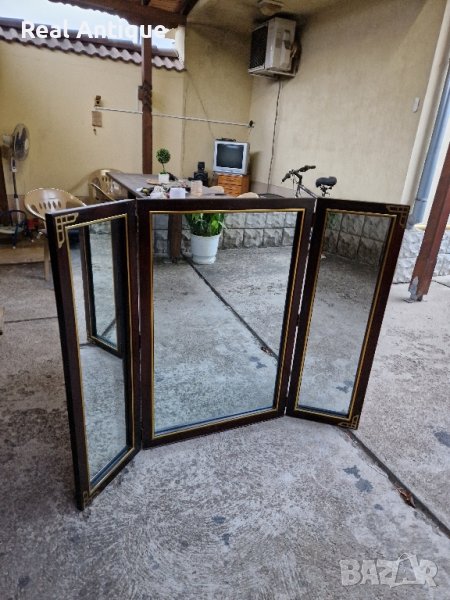 Продавам уникално голямо антикварно английско огледало с бронзов обков в много добро състояние. Много тежко масивно стабилно. Майсторска изработка. Дължина 140 см височина 100 см. Прекрасно допълнение към интериора на Вашия дом офис вила. Подходящо и за подарък. Работя с всички куриери. Отговарям бързо.