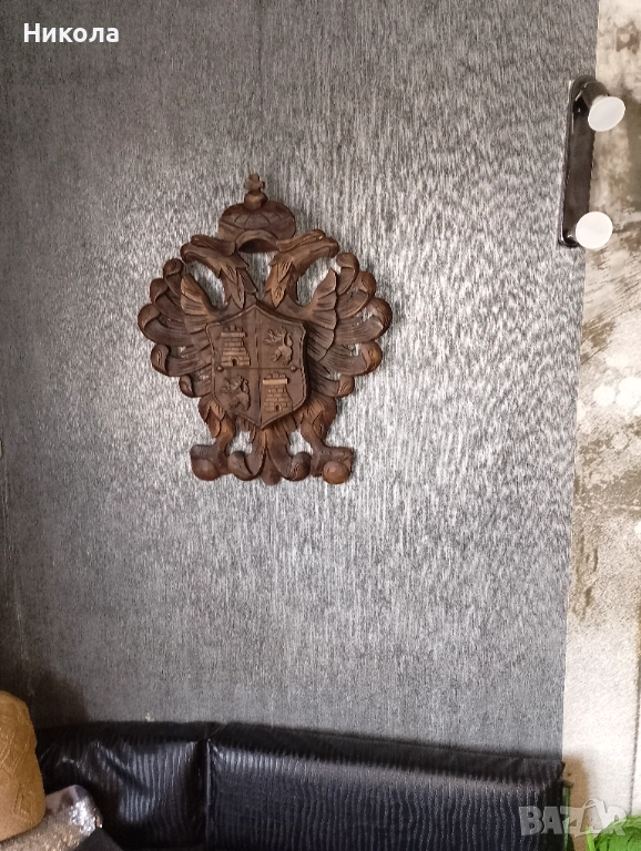 Дърворезбован хералдически двуглав орел 53/28см → Обява 42627976