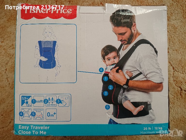 Нова ергономична раница новородено Hauck Fisher Price Easy Traveller
