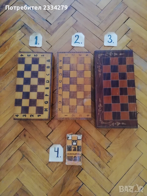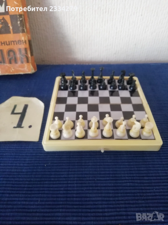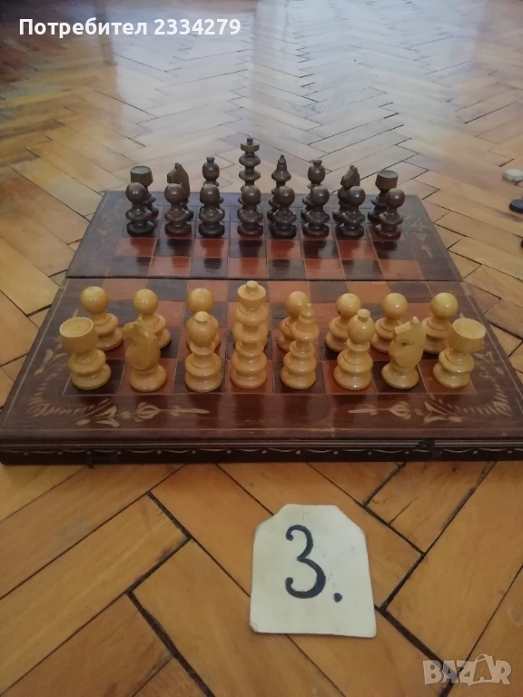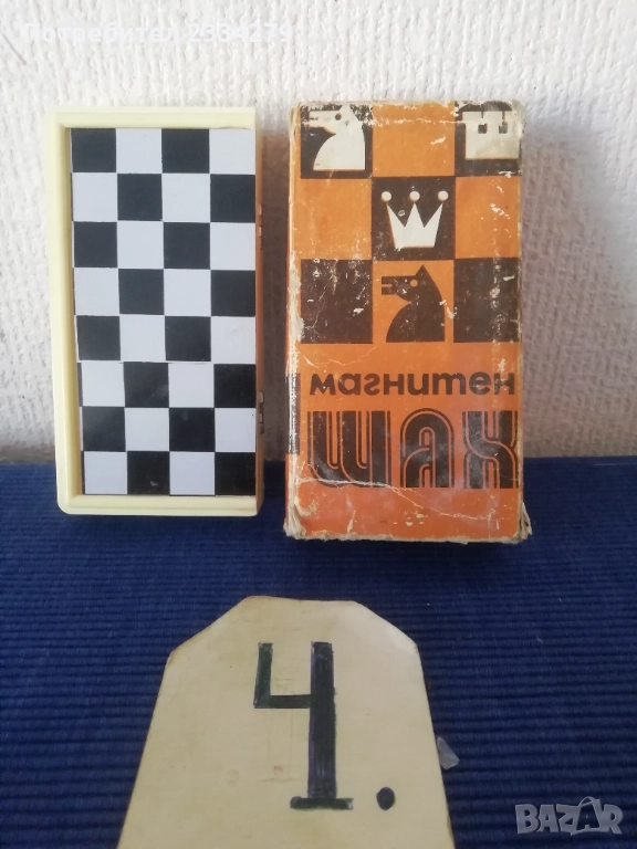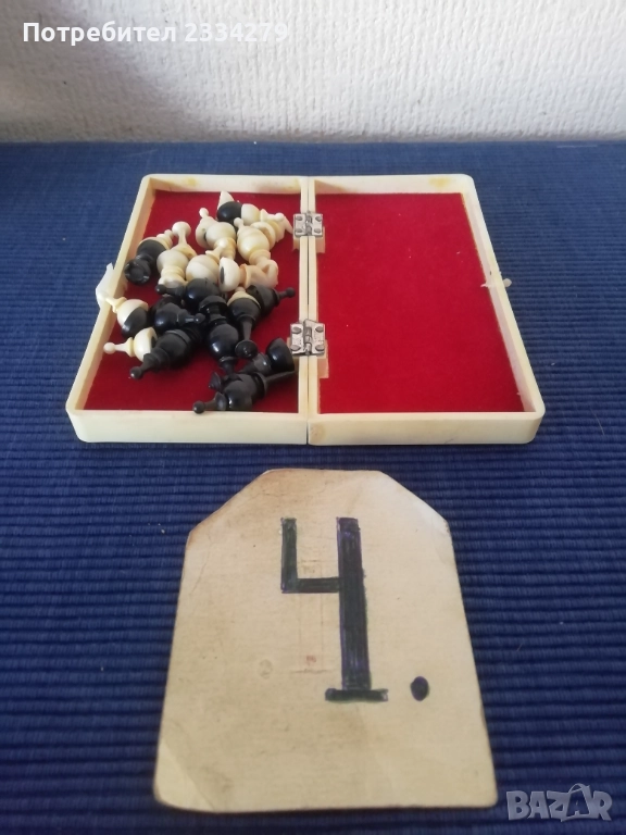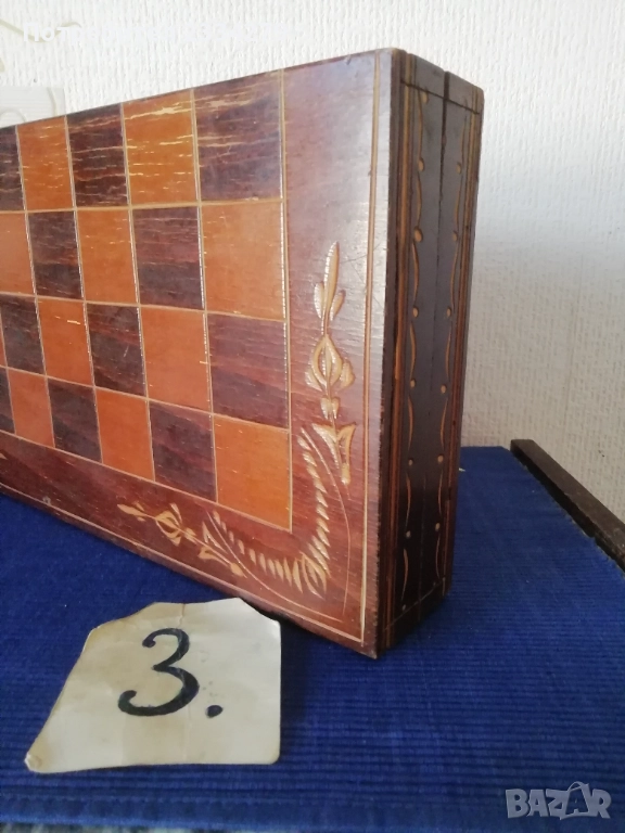 дърворезба, орнаментирана кутия-дърворезба, размери 38х38см.,цена 20€.; N:4 мини магнитен-туристически шах с оригинална опаковка, магнитни пластмасови фигури и кутия отгоре с метал отвътре кадифе, изработен около 70-80те години, размери 13х13см., цена 11€., много добре запазен. N:5 ИМА ДВА КОМПЛЕКТА БАКЕЛИТОВИ ШАХОВИ ФИГУРИ В МНОГО ДОБРО СЪСТОЯНИЕ!