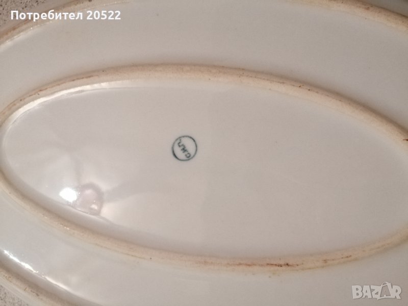 Старо порцеланово плато на СИП. Леко износване на канта на места. Без забележки. Цена 20 лв