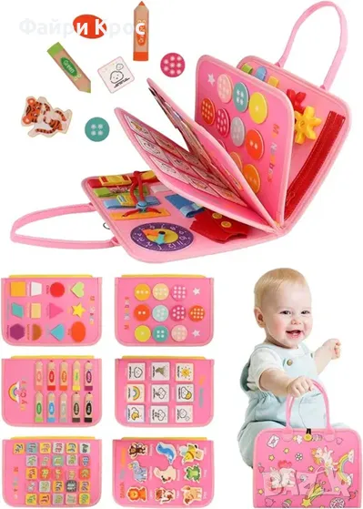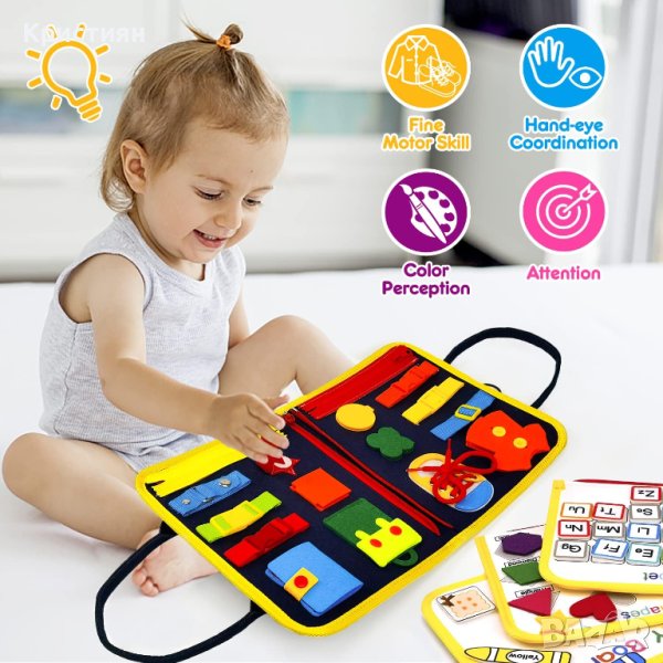 Бизиборд занимателно куфарче книжка Монтесори активна дъска за учене
