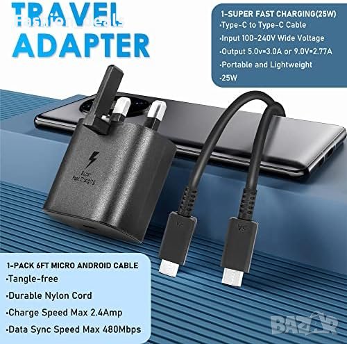 Ново 25W Бързо Зарядно + 1.83м USB C Кабел Оптимална защита Подарък