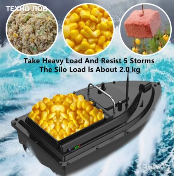 Когато батерията на лодката или дистаннционното се изтощи,започва звуков сигнал на дистанционното за предупреждение.Има круйз контрол.Голяма рибарска лодка за захранка с контейнер 2кг капацитет.Безжично дистанционно със круйзконтрол на лодката (Обхват : 400- 500 метра)Два задвижващи мотора за по лесно управление.Една лампа отпред и две отзад за нощен риболов.Устойчиво на вълни тяло.Лодката се задвижва от батерия с възможност за замяна и резервна батерия ( една включена батерия в комплекта)Дистанционно управление с батерия ААА включени в комплектаСпецификации:Материал: ABS+MetalБатерия на лодката : 1* 7.4v Презареждаща батерия включена в комплектаБатерия за дистанционно: 2*ААА включена в комплекта Време за зареждане: около 10 часа Товар капацитет: 2кгОбхват на дистанционното: 500м