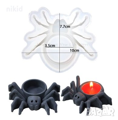 3d голям паяк поставка за свещ свещник Хелоуин силиконов молд форма фондан смола гипс шоколад декор, снимка 1 - Форми - 42636517 3d голям паяк поставка за свещ свещник Хелоуин силиконов молд форма фондан смола гипс шоколад декор, снимка 2 - Форми - 42636517 1/2