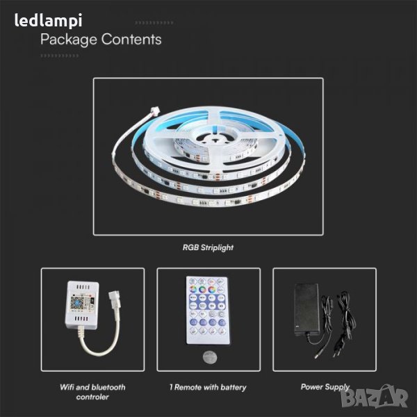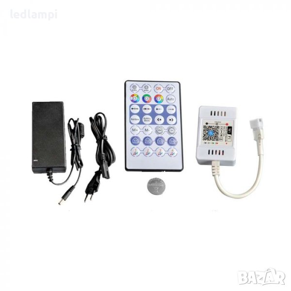 - Пакетът включва 1бр. захранващ адаптер, 1бр. Wi-Fi & Bluetooth контролер и 1бр. дистанционно управление (включена батерия)
