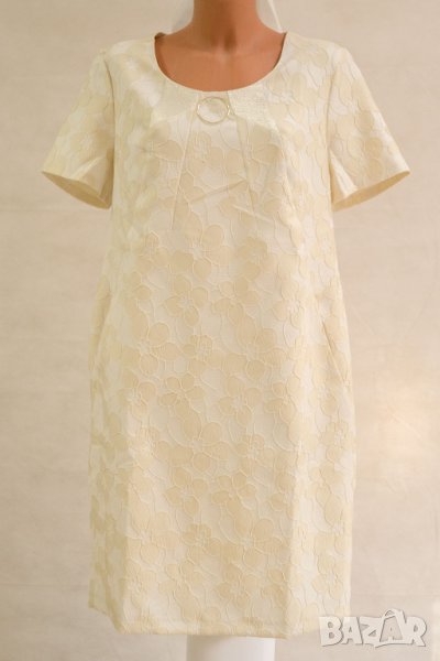 Рокля в цвят екрю и бежово с флорални мотиви Margo Collection - M → Обява 42638602