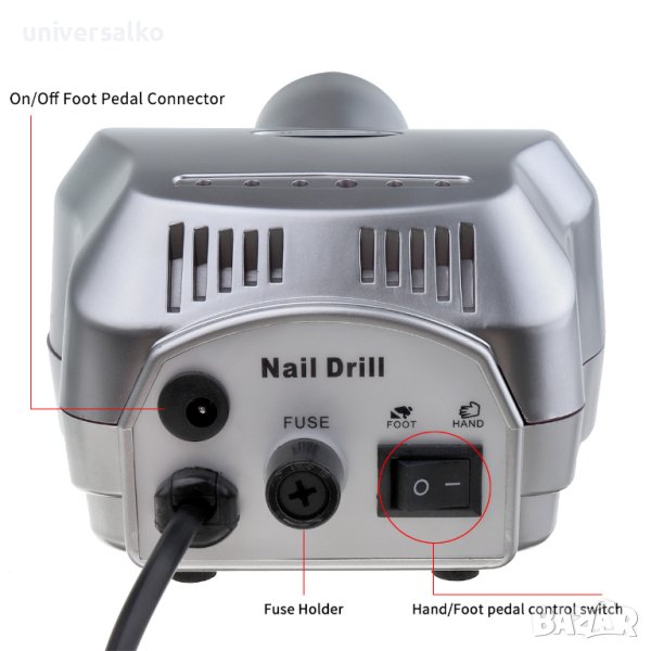 Професионална електрическа пила за маникюр и педикюр, 35 000 оборота. Снабдена с два режима на работа, може да работи и без педал. Регулиране на оборотите от 0 до 35 000 от корпуса на уреда или от педала. Нисък шум и вибрации, подходяща за продължителна работа. Олекотен и компактен дизайн - само 1 кг. Подходяща както за професионална, така и за домашна употреба.