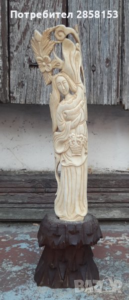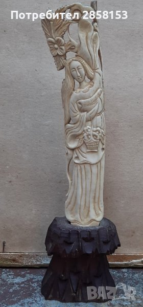Фино резбована фигура от кост. Височина 20 см без поставката и 27 см с поставката.