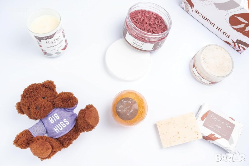 Поглезете себе си или любим човек с нашия комплект за релаксация „всичко в едно“, предназначен да осигури комфорт по време на възстановяване. Потопете се в терапевтична вана с нашата първокласна бомба за баня, обогатена с етерични масла за успокояване на мускулите и ума. Подобрете потапянето си с нашите ревитализиращи соли за вана, известни със своите терапевтични свойства, които стопяват стреса и дискомфорта. Създайте настроение с нашата ръчно излята ароматерапевтична свещ и почистете с нашия подхранващ сапун. И за това допълнително докосване на топлина, нашият комплект включва пухкаво плюшено мече, което със сигурност ще донесе комфорт и радост. Перфектна комбинация от релакс и грижа за повдигане на настроението!