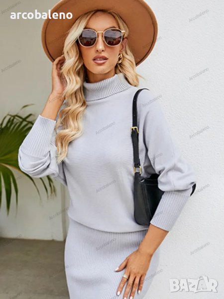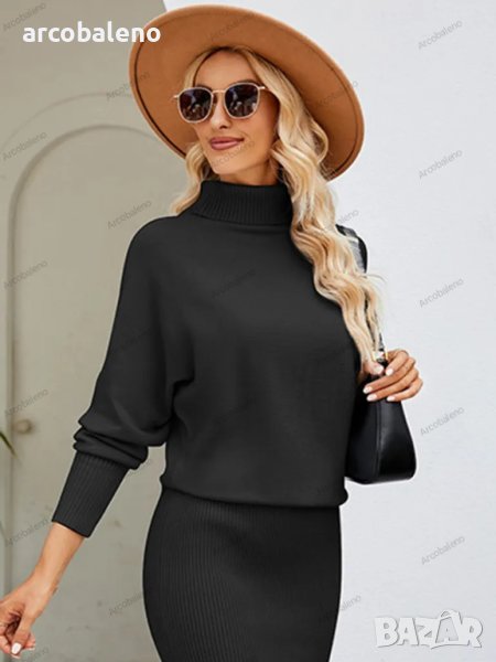 Дамска прилепнала рокля-пуловер с висока яка и дълъг ръкав. Моля, използвайте ръководството за размер, показано на нашите снимки. Преди да изберете размер, моля, прочетете внимателно всеки елемент от ръководството за размери. Уникален дизайн, класически стил, ежедневни и удобни. Подходящо е за излети и свободно време. Размерът се измерва ръчно и грешката от 1-3 см е нормална.