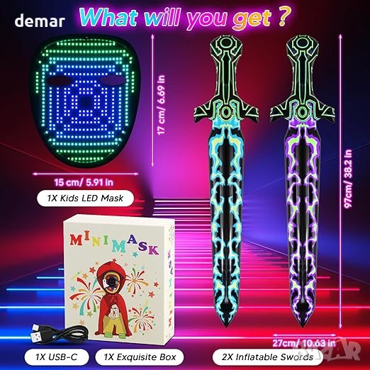 Представяме ви нашата Super Cool LED маска - задължителна за Хелоуин и след това! С 698 високоинтензивни и 2121 RGB LED лампи, той предлага 40 динамични режима на показване и 30 статични изображения, гарантирайки, че вашите деца ще откраднат светлината на прожекторите на партита и фестивали. Маската дори реагира на жестове за промяна на картината. Той може да се похвали с дълго време на работа от 8 часа след само 4 часа зареждане (USB TYPE-C). Изработен от здрава пластмаса и мек силикон, той осигурява удобно прилягане за носене през целия ден, което го прави идеален за различни поводи като Хелоуин, партита, косплей, рождени дни, Коледа и др. Подарете на децата си тази уникална и забавна джаджа!